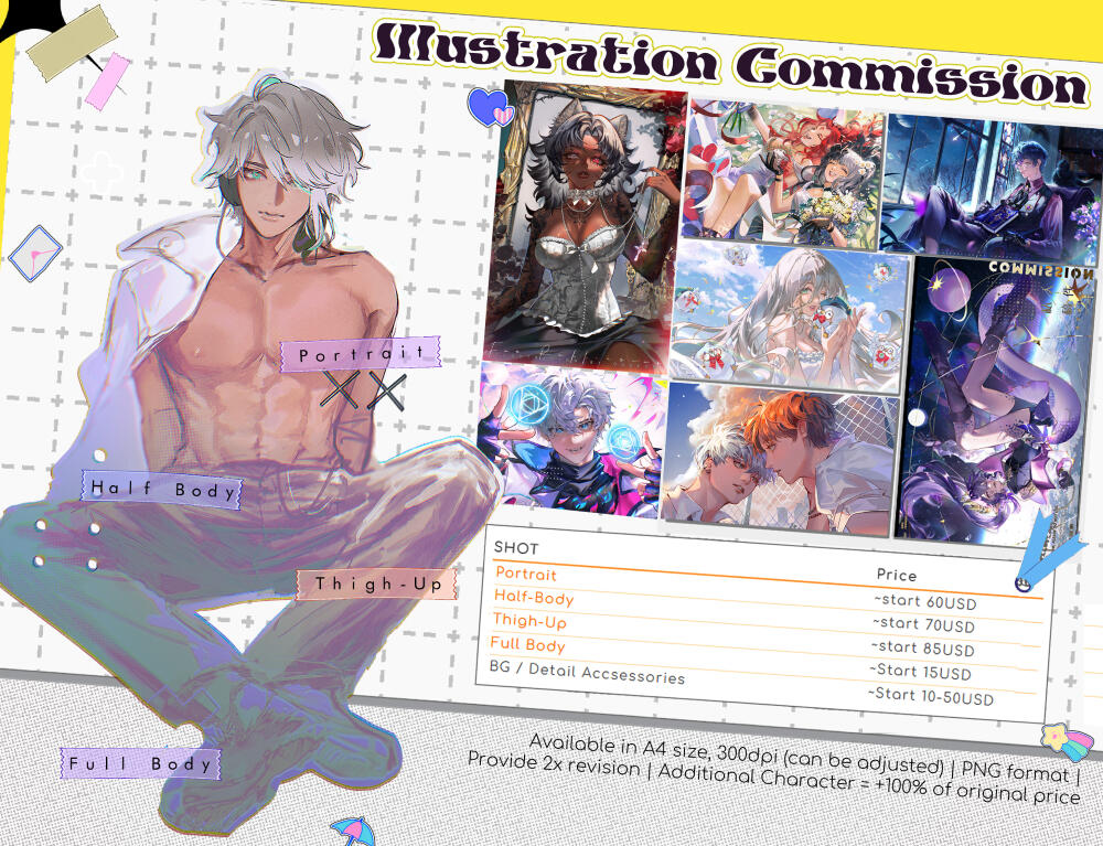 ⋆ For commercial commissions, there will be an additional commercial fee.
