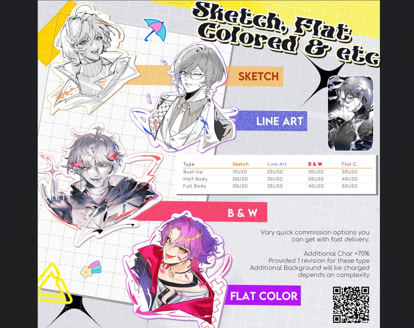Vary quick comms options like Sketch, Line Art, Greytale and simple coloring sketch.☆ Fast delivery